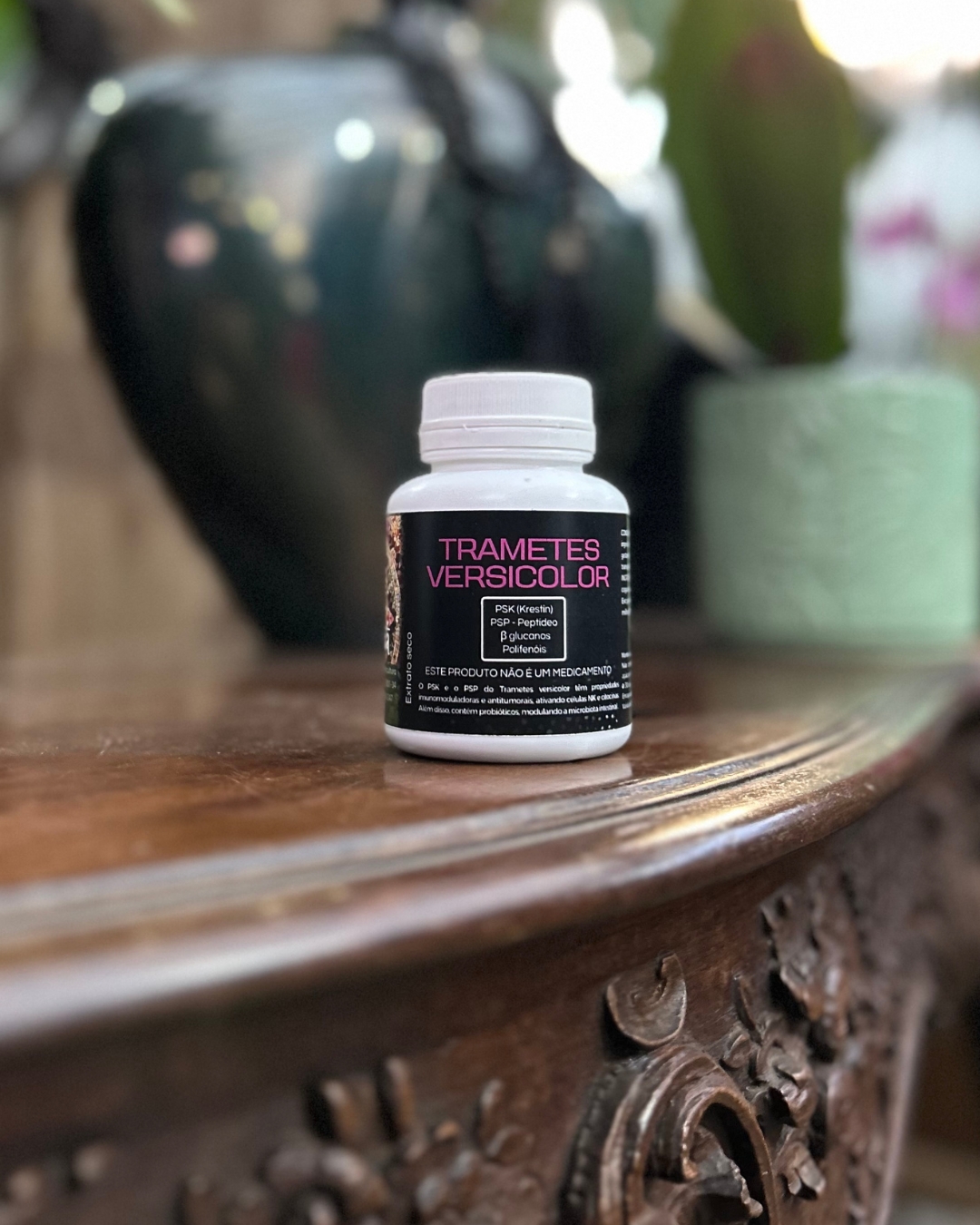 Polissacarídeos (PSP e PSK): O polissacarídeo-peptídeo (PSP) e o polissacarídeo-K (PSK, também conhecido como Krestin) são β-glucanos com propriedades imunomoduladoras. Esses compostos estimulam a resposta imune inata e adaptativa, promovendo a ativação de células como macrófagos, linfócitos T e células NK, além de inibirem vias pró-inflamatórias. Estudos recentes demonstram que PSP e PSK apresentam potencial adjuvante em terapias oncológicas, aumentando a eficácia de tratamentos convencionais e reduzindo efeitos adversos